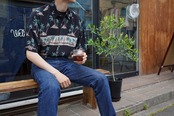 ブラックボディに総柄と無難に見せておいて、胸のラインのパターンは別の柄となっており、細部にもこだわりを感じるアイテムです。