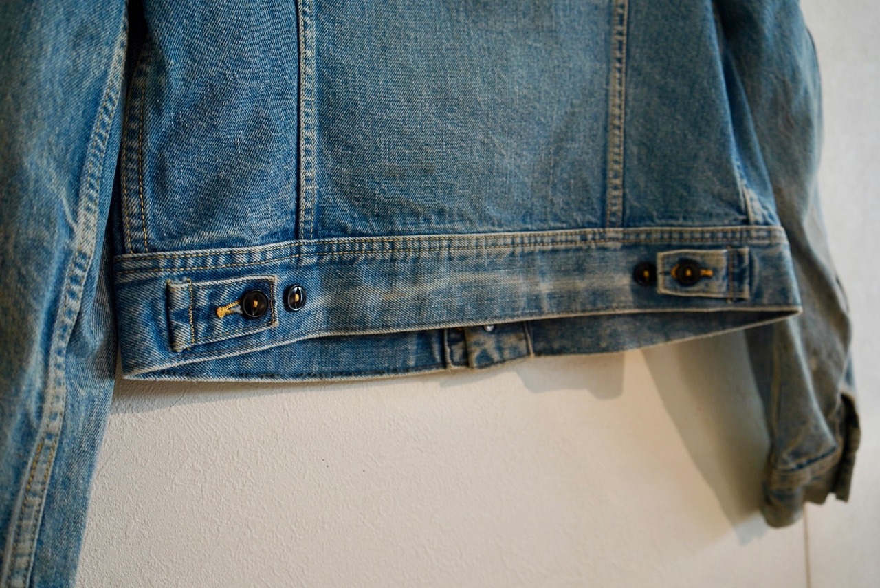 全体に程よい色落ちがあり、袖や裾にはリアルな使用感と汚れが見られますが、それもまたヴィンテージならではの味として楽しめます。同じ色落ちのデニムパンツとのセットアップや丈の短さを利用してレイヤードもオススメです。
